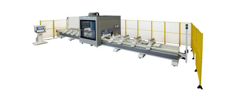 • Suitable for milling, drilling, tapping and cutting on the 5 sides of aluminum, PVC, steel and light alloys profiles; thanks to the 5 axis interpolation, the machine is able to execute composite cuts.